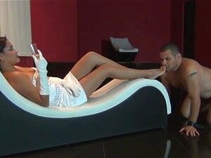 Video sotto i piedi: Maya, è irresistibilmente bella in quel vedere attraverso il corpo con una frusta di pelle in mano. Maya si farà lucidare i piedi dalla lingua dello schiavo stasera. E per renderlo più entusiasta e per divertirsi lo cavalcherà